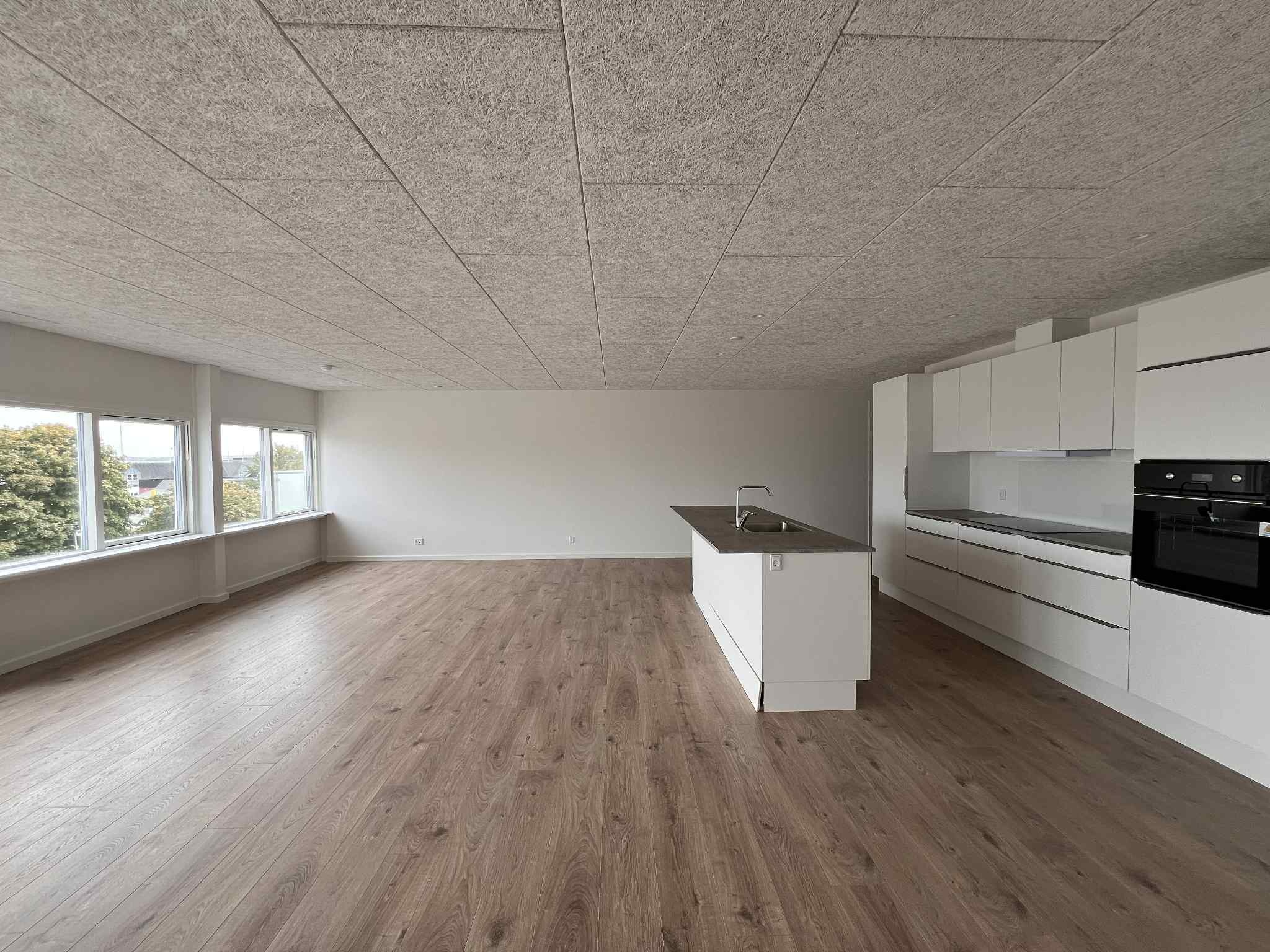 Stor flot, lys lejlighed med en af de flotteste udsigter i Thisted Midtby. Gennemgående nye trægulve. Moderne og lækker køkken alrum samt stor altan med udsigt til vandet, dejlige store rm.